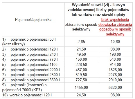 stawki opłat za gospodarowanie odpadami komunalnymi